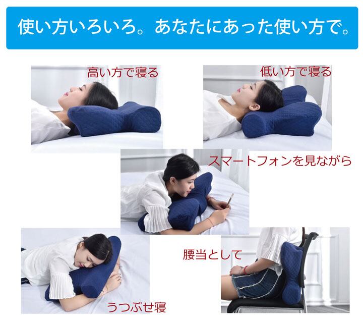 理想の寝姿勢をつくり、いびきなどの睡眠時の悩みを解消する枕です。頚椎をサポートすることで理想の寝姿勢をつくります。低反発素材で、身体に合わせて使用できます。仰向け寝以外にも、横向け寝、うつ伏せ寝、などいろいろな用途で使えます。