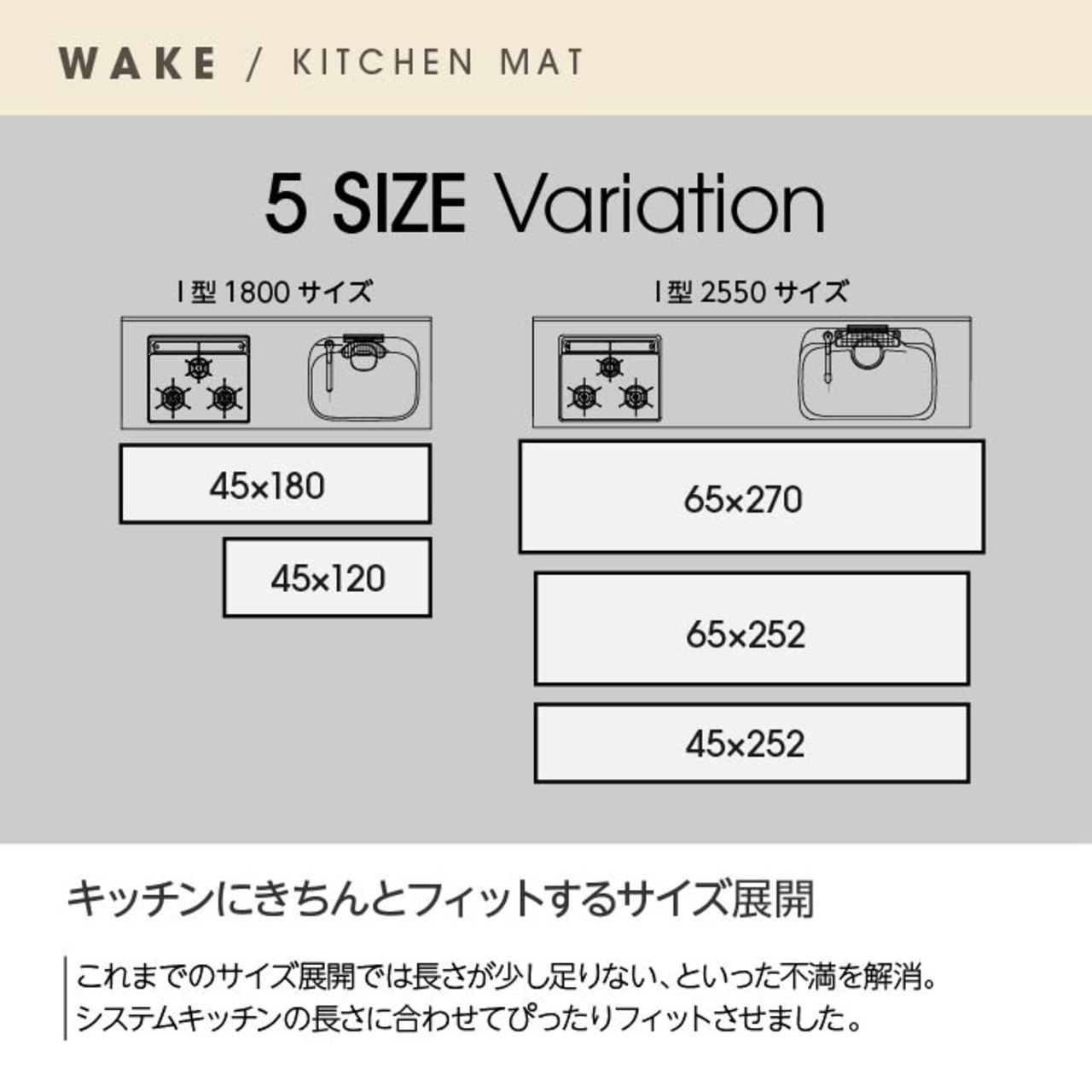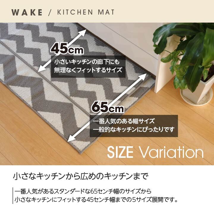 システムキッチンにも合いやすいサイズのキッチンマットです。通常タイプと幅広タイプの2種類をご用意しました。目付を上げることで弾力のある優しい踏み心地に仕上げました。コンパクトにも畳める商品なので収納も簡単です。汚れた際は洗濯機でも洗えるため清潔にご使用いただけます。(洗濯時はネットを使用してください)シンプルな幾何柄が特徴の商品です。