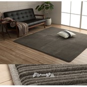 表地はなめらかタッチのフランネル素材を使用し、凹凸感を出すことでより触り心地が良いです。中材には低反発ウレタン15mmを使用しています。柔らかい感触とボリューム感をお楽しみください。裏地には滑り止めがついているので安心です。ホットカーペットカバーや床暖房の上でもご使用いただけるので、オールシーズン対応のラグです。ルームマットサイズからラグサイズまで展開しております。選べるカラー4色展開です。