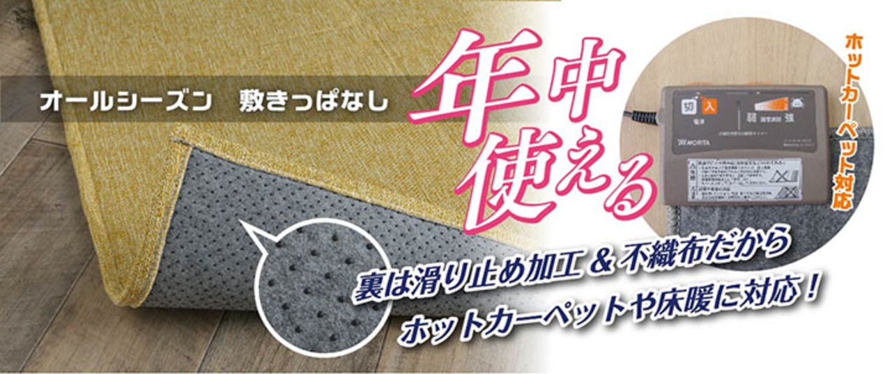 年間ご使用できる商品です。短毛使用でお掃除もしやすくまた、コンパクトに畳めます。10色展開で色々なお部屋のシーンに対応しています。ナチュラル系、ダーク系、ビンテージ系と様々なお部屋に合わせることができる優れものです。