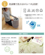 生地に抗菌・防臭加工を施した、ラグカーペットです。表地にはフランネルと呼ばれる、しっとりとして非常に柔らかい生地を使用しています。軽量で持ち運びが楽々です。薄手で小さく折りたたむことができますので、収納時にも場所を取りません。フローリングを傷つけにくいよう、裏には不織布を貼っています。ご家庭の洗濯機で洗えるウォッシャブル仕様ですので、清潔にご使用頂けます。電気カーペットカバーとしてもご使用頂けます。季節を選ばすオールシーズンご使用頂けます。多サイズ展開で、ワンルームから子ども部屋、リビング・ダイニング、ベッドサイド、ソファ前にも。いろいろなシーンに合わせてお選び下さい。