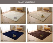 中わたに抗菌防臭加工を施した無地のキルトラグカーペットです。表地には柔らかく、肌触りの良いフランネル生地を使用してます。毛足が短いので掃除機もかけやすく、毛足にゴミや埃が絡みにくいという特長もあります。フローリングを傷つけにくいよう、裏には不織布を貼っています。またすべりにくい加工も施しておりますので、フローリングでも安心してご使用頂けます。中材にはウレタン10mmを使用しておりますので、適度なボリュームとクッション性があります。また、表地の素材が同じで同色のコタツ掛け布団も別途取扱いがありますので、トータルでのコーディネートもおすすめです。コタツ敷布団、ホットカーペットカバーにも適しています。床暖房にも対応しています。※本商品は圧縮梱包でのお届けとなります。商品が届きましたらお早めに開梱して頂き、2~3時間日陰干しをして頂くと復元が早まります。