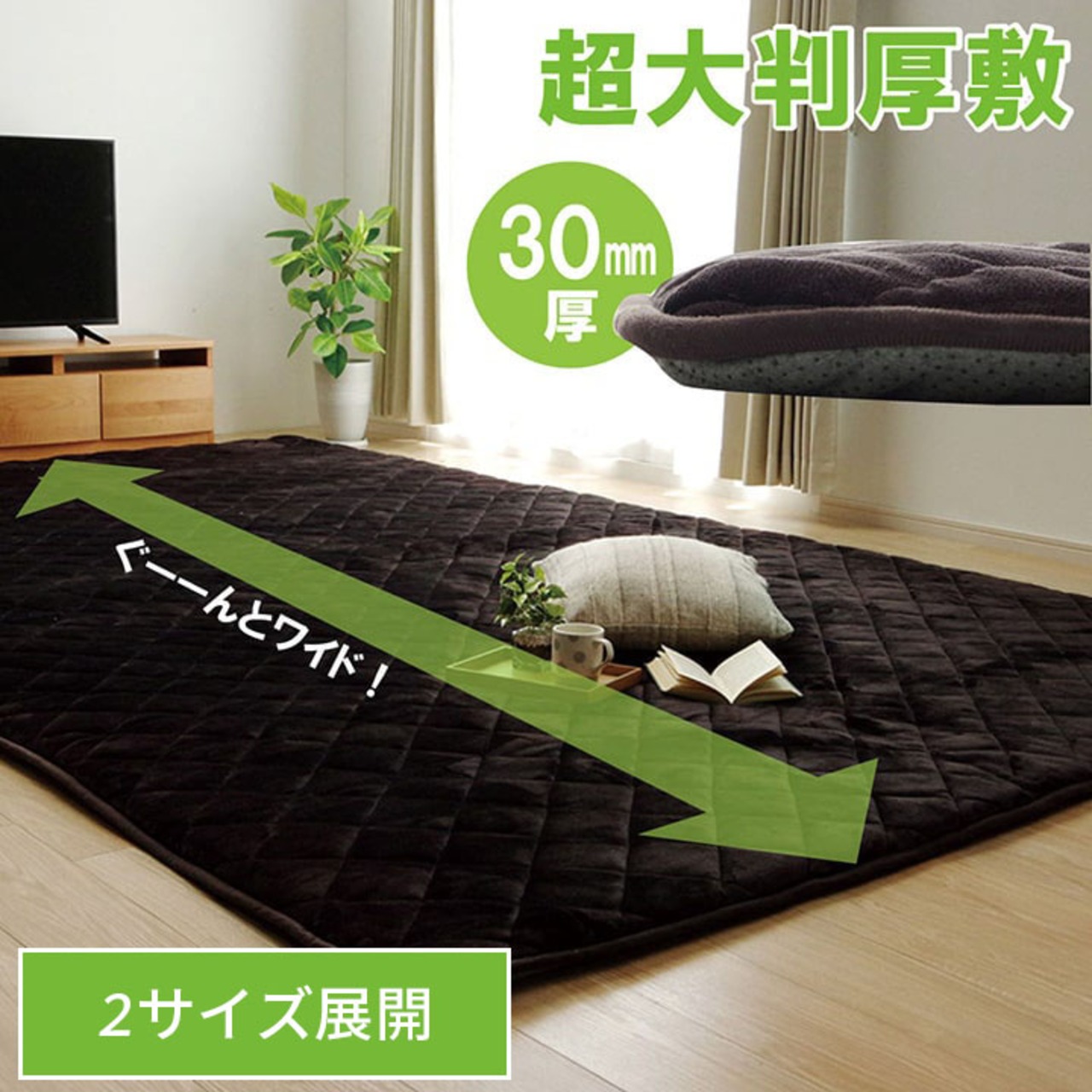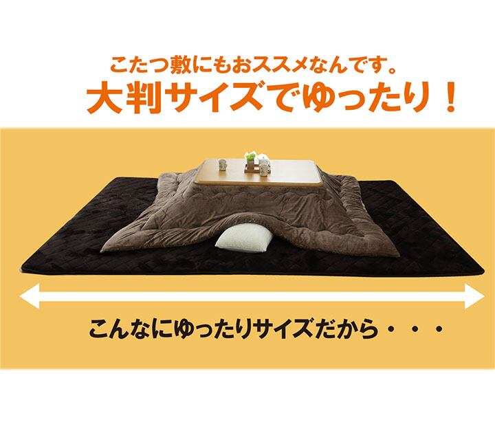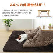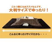 こたつ布団でごろんと横になりゆっくり過ごしたい方にお勧めのこたつ布団敷きです。こたつ布団に入ったままごろんと横になっても体がはみ出にくい大きさにしました。中綿には固綿を20mm使用し,ふっくらとしたボリュームを,表地には滑らかなタッチ感のフランネルを使用することでゆったりこたつライフをお楽しみいただけます。
