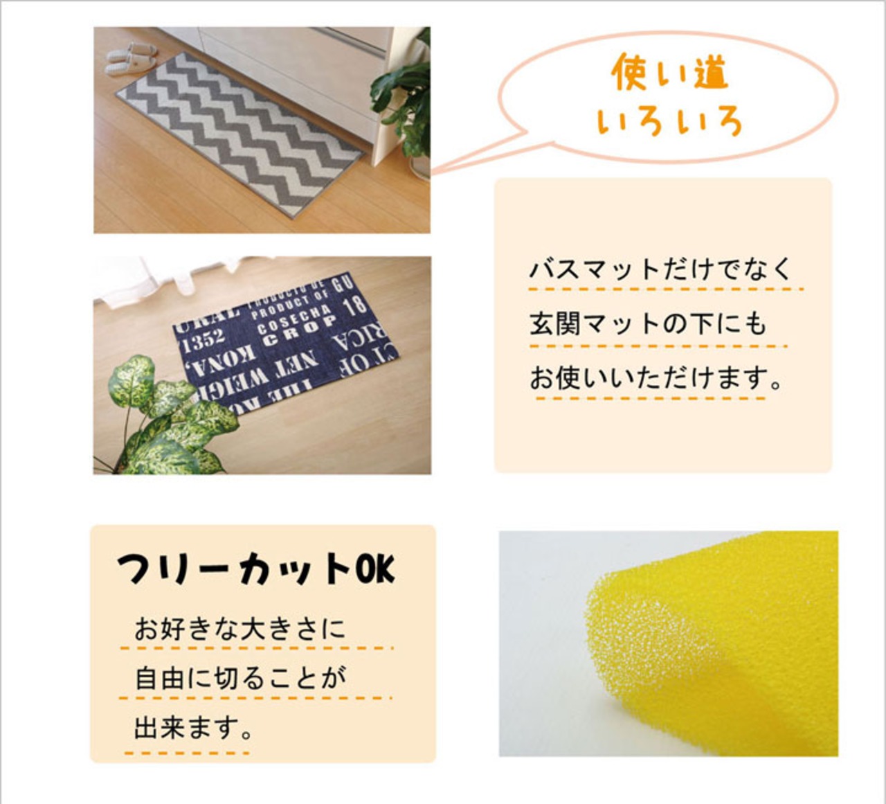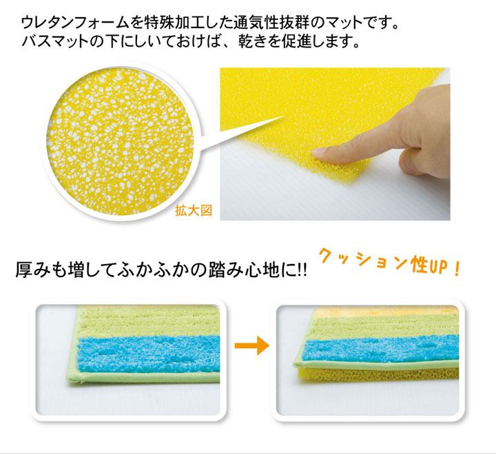 ウレタンフォームを特殊加工して通気性を良くしています。バスマットの乾きを促進するマットです。