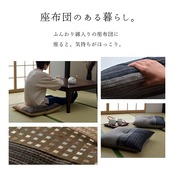 しじら生地を繋ぎ合わせて和モダンの柄を出しており、さらっとした肌触りの座布団です。国内綿入れ加工でふかふかの座り心地です。大勢の来客にも対応できる同色2枚セットです。