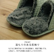 ご自宅用・来客用・オフィス用など幅広くどんな場面でもご使用いただけます。もこもこ素材でぬくもりのある肌触りなので素足で履くことが可能です。履いた時にフィットするので脱げにくく歩きやすいルームシューズです。裏側はTPR素材を使用しており、汚れた際は水拭きする事ができ、お手入れも簡単です。MサイズとLサイズの2サイズ展開で男性も女性も履けるのでお揃いでもご使用いただけます。
