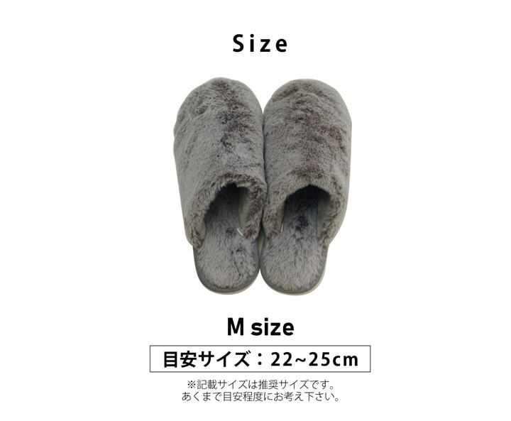ご自宅用・来客用・オフィス用など幅広くどんな場面でもご使用いただけます。プレゼントにもおすすめです。ラビットファータッチのしっとりふわふわした肌触りで素足で履くことも可能です。履いた時にフィットするので脱げにくく歩きやすいルームシューズです。裏側はPVC素材を使用しており、汚れた際は水拭きする事ができ、お手入れも簡単です。