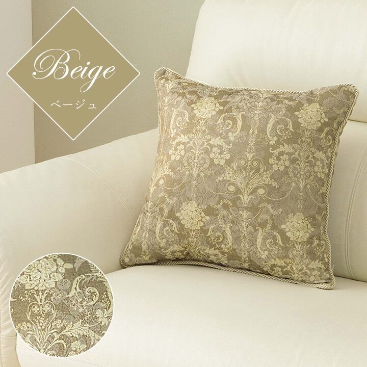 お部屋をぱっと華やかにするエレガントな柄のセアテクッションです。