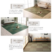 い草カーペットは和室の畳をカバーし、汚れや傷を防止してくれます。通常のカーペットと違い毛足が無いのでゴミや髪の毛などがからみにくく、掃除機やコロコロ(粘着シート)での掃除がラクにできます。裏面には滑り止め付きの不織布を貼っており、床を傷つけずソフトな踏み心地でフローリングの上でも滑りにくいです。い草には優れた消臭機能があり、汗臭やペット臭などの原因となる物質を消臭してくれます。い草には喘息の原因の一つとも言われる二酸化窒素や、シックハウス症候群の原因の一つのホルムアルデヒドを吸着してくれます。天然物質としては抗菌力の高い青森ヒバから抽出したヒノキチオールをい草生地に使用しており、抗菌防臭効果があります。い草の癒される香りとサラッとした肌触りはそのままに、和室や洋室にも合わせられるインテリア性の高いナチュラルシンプルなデザインで仕上げています。