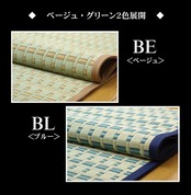 い草敷物の中でも高級品とされる「掛川織り」のカーペットです。掛川織は九州筑後地方の伝統的な織り方です。大きな目と小さな目に交互に織り込んだ美しく洗練されたモダンなデザインが人気です。また、厳選された良質の太く長いイ草を高密度に織り込んでいますので丈夫で耐久性があり、しかも素足に心地よいクッション性とボリューム感があります。い草には空気の自然浄化作用、湿度の調節作用などがあります。また汚れにくく、使用するうちに黄金色に変化し味が出ます。い草に青森ヒバ加工を施しています。(抗菌、防臭効果)